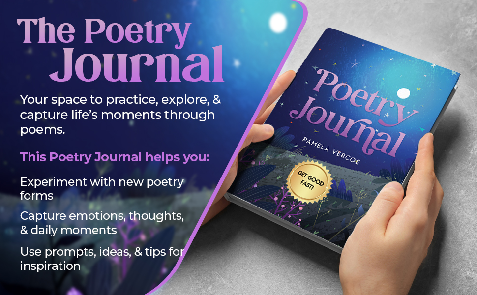This journal is designed to help you on your creative journey. You can use your Poetry Journal to practice new forms of poetry or to quickly capture impressions, or a moment in time. The Journal has suggestions for poetry elements and forms for you to try, prompts and ideas and tips for recording your life through poems.